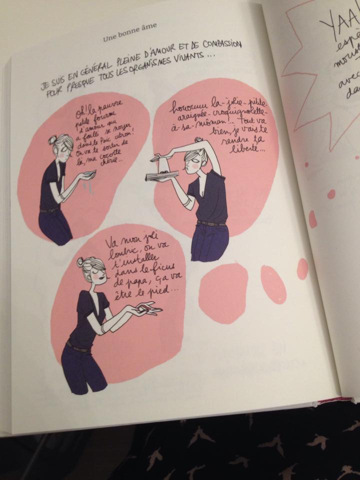 Les dessins sont très réussis, Margaux Motin est extrêmement talentueuse et les situations qu’elle décrit sont hilarantes. Même si elle est plus âgée que moi et qu’elle n’a pas le même quotidien puisqu’elle est maman et qu’elle décrit donc ses propres situations, cela ne m’a absolument pas empêchée de les comprendre et de rire à en pleurer pour certaines. L’humour est génial et je n’ai pas pu résister au contenu de cette BD. J’ai déjà hâte d’en lire d’autres.