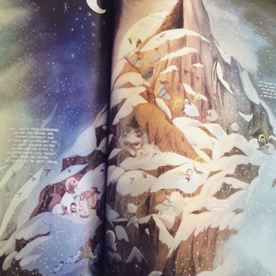 Parfois, la couverture d’une BD promet de belles illustrations mais elles n’ont pas grand chose à voir avec celles qui constituent la BD. Avec L’homme montagne, le lecteur n’est absolument pas déçu en découvrant l’intérieur de la BD. Chaque page est plus belle et plus magique que la précédente. Les couleurs nous envoûtent dans un univers magnifique et mettent en valeur les paysages et les personnages.