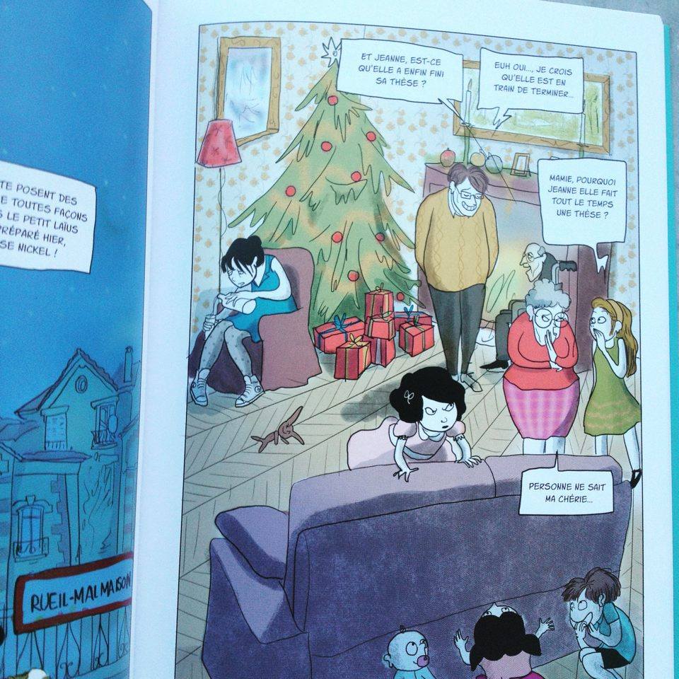 Cette BD est en grande partie je suppose autobiographique puisque l’auteur a été elle-même thésarde en littérature et c’est par le dessin qu’elle a choisi de raconter son expérience par le personnage de Jeanne. C’est une bande dessinée qui est très drôle et en même temps assez sidérante. On comprend rapidement qu’il est difficile de mener à bien sa thèse en 3 ans comme cela est normalement prévu au départ.
