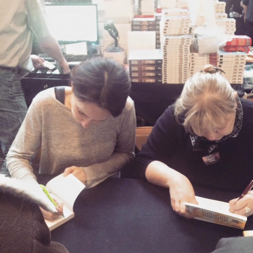 Barbara Abel (à gauche) qui signait à côté de Karine Giebel (à droite) :