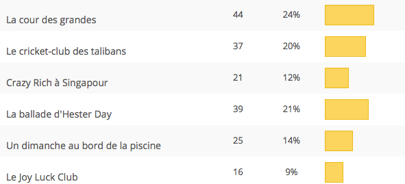 Moi aussi, je vote pour le Joy Luck Club ! Mais le choix est difficile..