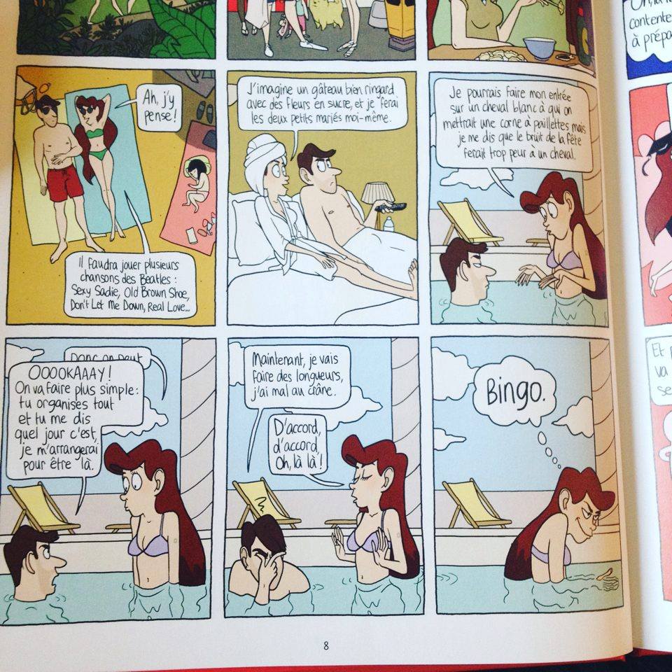 Une BD sur le mariage et son organisation, tout cela avec beaucoup d’humour. On passe un très bon moment, cela divertit et que l’on se soit marié ou pas, on rigole souvent. Un peu trop courte cependant et des dessins pas suffisamment travaillés à mon goût, mais un moment agréable de lecture.