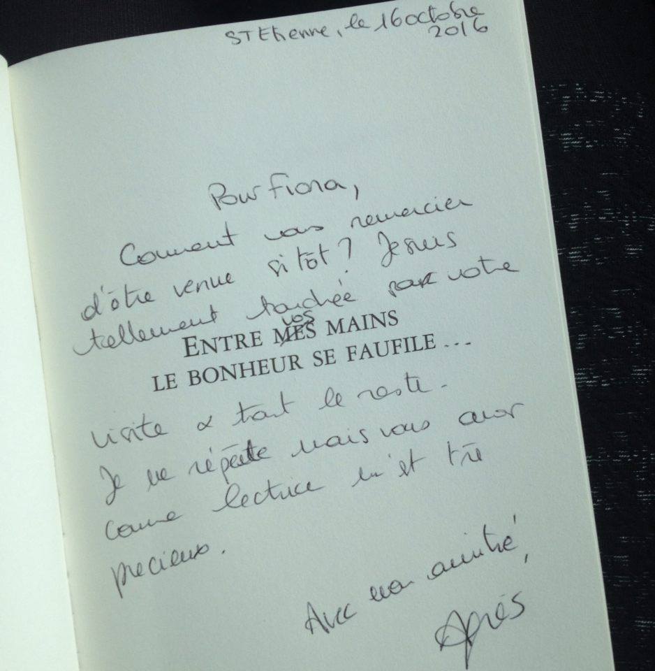 J’ai eu beaucoup de plaisir à voir ou revoir ces auteurs que j’adore. C’est toujours un vrai bonheur de voir Agnès Martin-Lugand et cette deuxième rencontre était aussi belle que la première. Véronique Poulain est une femme adorable que je suis très heureuse d’avoir enfin rencontrée, tout comme Delphine Bertholon. Ces trois auteurs étaient vraiment mes rencontres « importantes ». C’est toujours quelque chose de spécial de pouvoir rencontrer « en vrai » les auteurs des romans qui nous ont touchés, qui ont eu un impact dans nos vies.