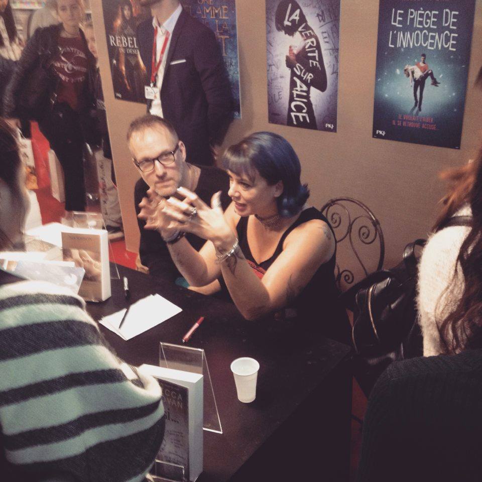 J’ai réussi à tous les rencontrer sauf Christelle Dabos et Aurélie Neyret. J’avoue avoir complètement abandonné face au monde qui patientait. J’ai également choisi d’aller voir Rebecca Donovan, non pas au Salon de Montreuil mais à Gibert Jeune, le vendredi soir. Il n’y avait quasiment personne et je ne regrette donc pas du tout d’y être allée. Il est tellement plus agréable de rencontrer les auteurs quand ils ont du temps à vous consacrer. Je n’ai pas encore lu Ma raison de vivre, mais il attend bien sagement dans ma PAL depuis sa sortie.