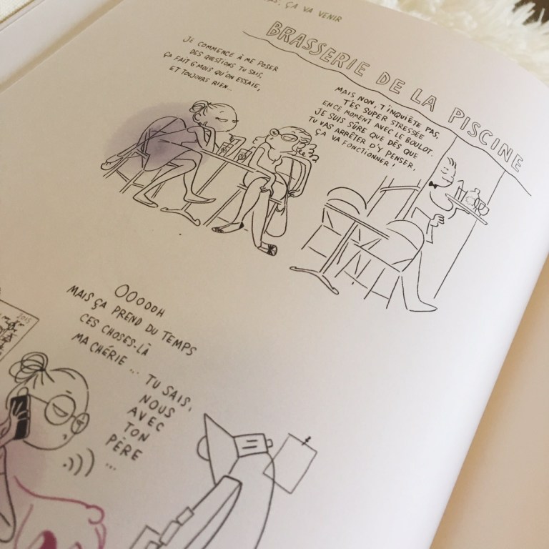 Etant confrontés à ce problème depuis trop longtemps je suis sûre que cette BD pourrait nous remonter le moral à mon chéri et moi ! « Arrête d’y penser », « ça prend du temps », « t’es trop stressée »… combien de fois est-ce qu’on les a entendues ces phrases assassines !!