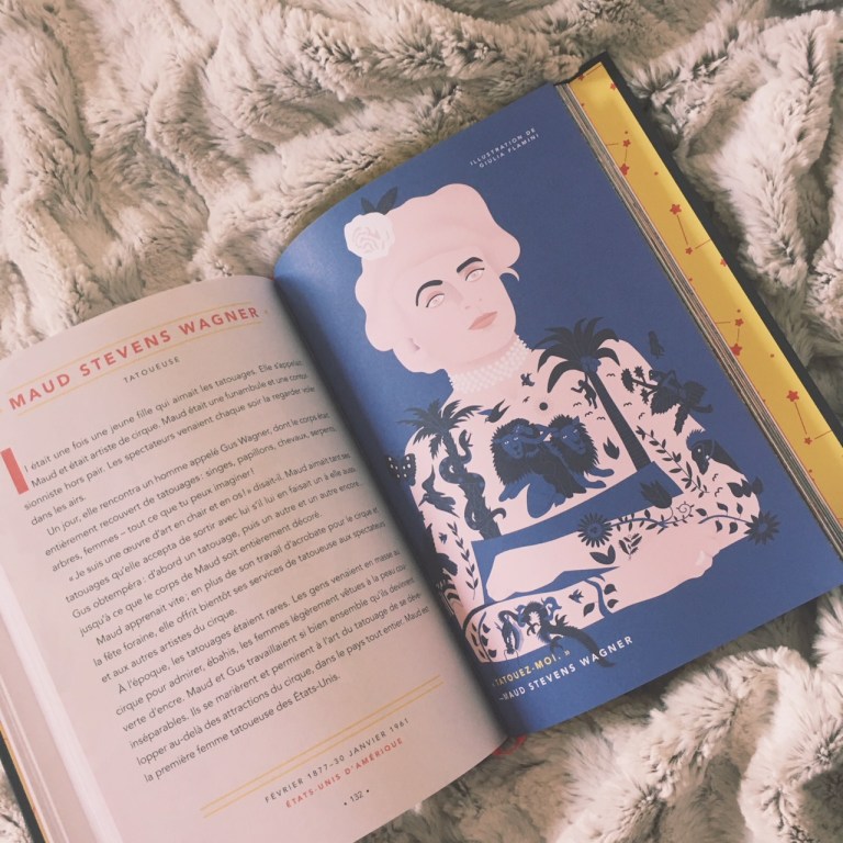 C’est un livre que l’on peut feuilleter, lire par petits morceaux, qui se savoure car chaque page est tout simplement délicieuse. Les histoires sont racontées comme des contes, alors qu’elles décrivent la vie de personnalités connues ou méconnues de notre Histoire, depuis longtemps disparues, ou encore bien vivantes. C’est tellement incroyable de découvrir le parcours de ces femmes, qu’ils soient aussi rendus accessibles aux plus jeunes grâce au talent des auteurs qui ont su les synthétiser en conservant leur caractère extraordinaire mais en allant à l’essentiel. J’ose imaginer que les enfants sauront être marqués par ces personnalités et auront la curiosité de vouloir en savoir plus à leur sujet, et c’est là tout l’intérêt du livre aussi.