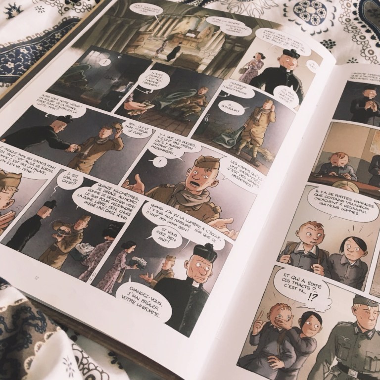 Beaucoup de sujets sont évoqués dans ce tome. Le sort des prisonniers coloniaux et l’existence de camps pour prisonniers en France, avec des soldats en fuite, qui vont croiser la route de nos personnages. Et puis, évidemment, la difficulté de s’impliquer, de résister, sans que l’on nous retrouve, en prenant garde à ne pas laisser de trace ou d’indice, pour ne pas être retrouvé. La fin de la BD m’a énormément émue, ce sont des passages très durs, et pourtant réalistes. Ils représentent cette période, dans ses plus terribles actes.