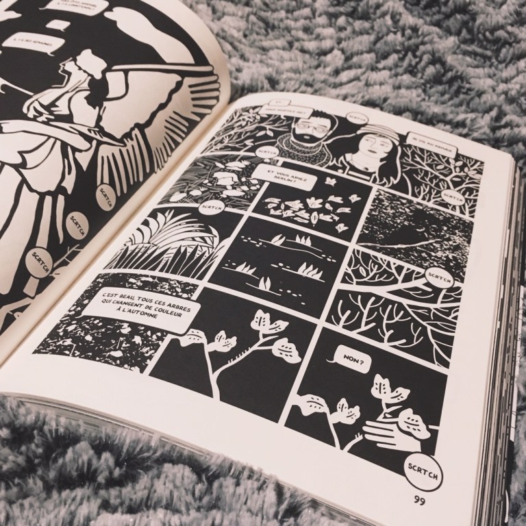 J’ai aimé ces parties-là qui parlent de l’exil, du fait de ne pas réussir à se sentir chez soi dans un pays autre que le sien. La difficulté de s’intégrer, de se faire comprendre, de renoncer à ses racines. Ces sentiments qu’on ne peut imaginer si l’on n’a pas vécu l’exil. J’ai trouvé que cette rencontre était sublimée par la BD et ils m’ont complètement renversée. J’ai aimé l’hommage fait à la langue, à la culture, à l’identité, à la beauté du monde. Cette BD est pleine de poésie, elle se lit comme si on ouvrait un conte, et c’était un moment privilégié de lecture.