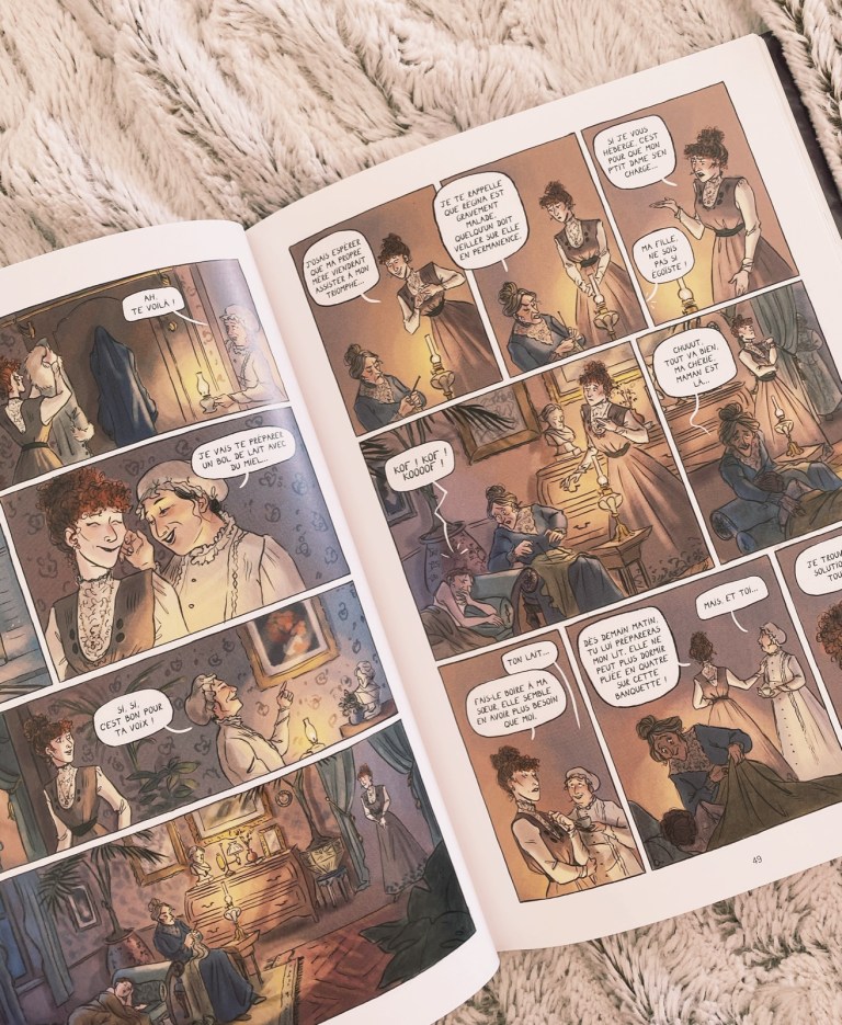 Sarah Bernhardt est un personnage de l’Histoire que je ne connaissais pas vraiment, et cette BD est donc tombée à pic, car j’ai pu découvrir cette femme et son parcours avec détails et belles illustrations. Par sa passion du théâtre, elle va marquer son époque et toutes celles à venir, et c’est avec brio que cet ouvrage nous raconte sa vie. Les dessins tout d’abord sont d’une grande réussite. J’ai aimé leurs couleurs et leur fraicheur pour redonner vie à cette femme hors du commun.