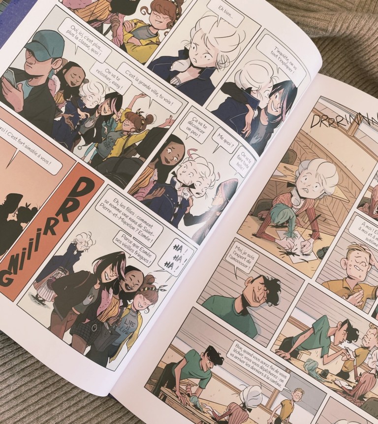 J’ai emprunté cette BD à la médiathèque après avoir été charmée (il faut le dire) par l’ambiance de cette sublime couverture. Il s’agit d’un premier tome d’une nouvelle série de BD pour la jeunesse.
