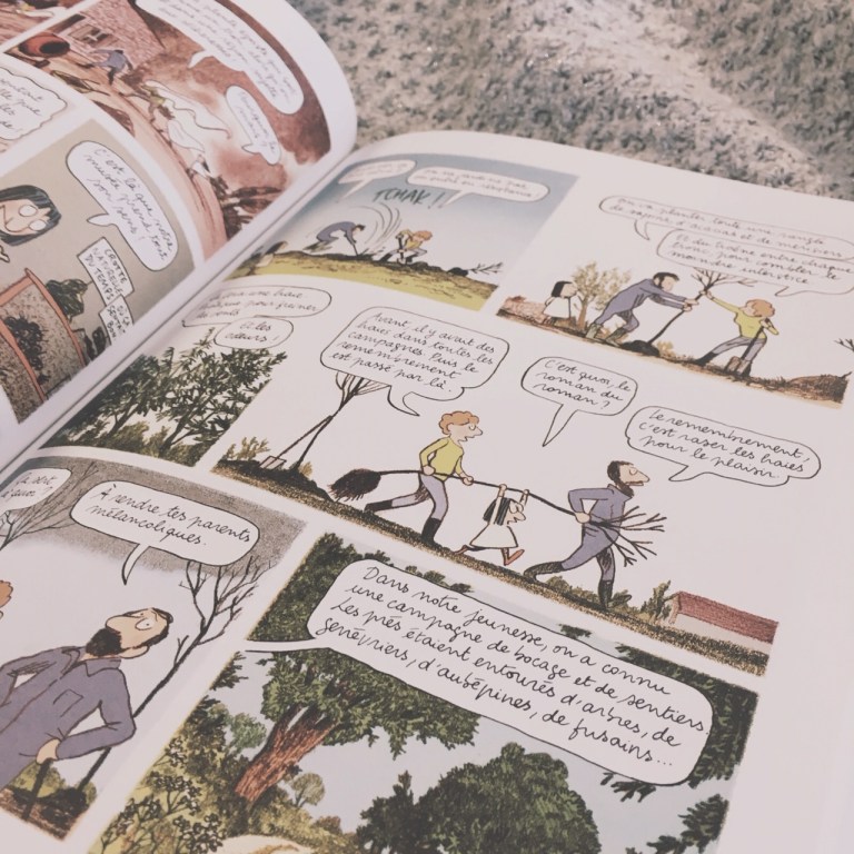 Personnellement, beaucoup d’aspects de cette BD m’ont parlée, car j’ai grandi dans cette région qu’elle décrit, et le monde rural m’est assez proche, par mon expérience personnelle ou par celles de mes proches. Je sais donc avec certitude à quel point cette BD représente si justement la campagne, et à quel point elle saura résonner en beaucoup de personnes qui ont vécu ou qui vivent cette vie-là. Pour accompagner ces moments de vie volés, ce passé qu’elle raconte avec douceur, il y a aussi la littérature, l’art, la peinture. Tous ces mots qui, même sans voyager, permettent de mieux voir le monde. Avec « Les grands espaces », Catherine Meurisse offre un chant d’amour à la campagne française, à la ruralité, et à tous les bonheurs simples de la vie, que notre société a tendance à effacer au profit de la consommation et des grandes villes, qui prennent le pas sur les campagnes.