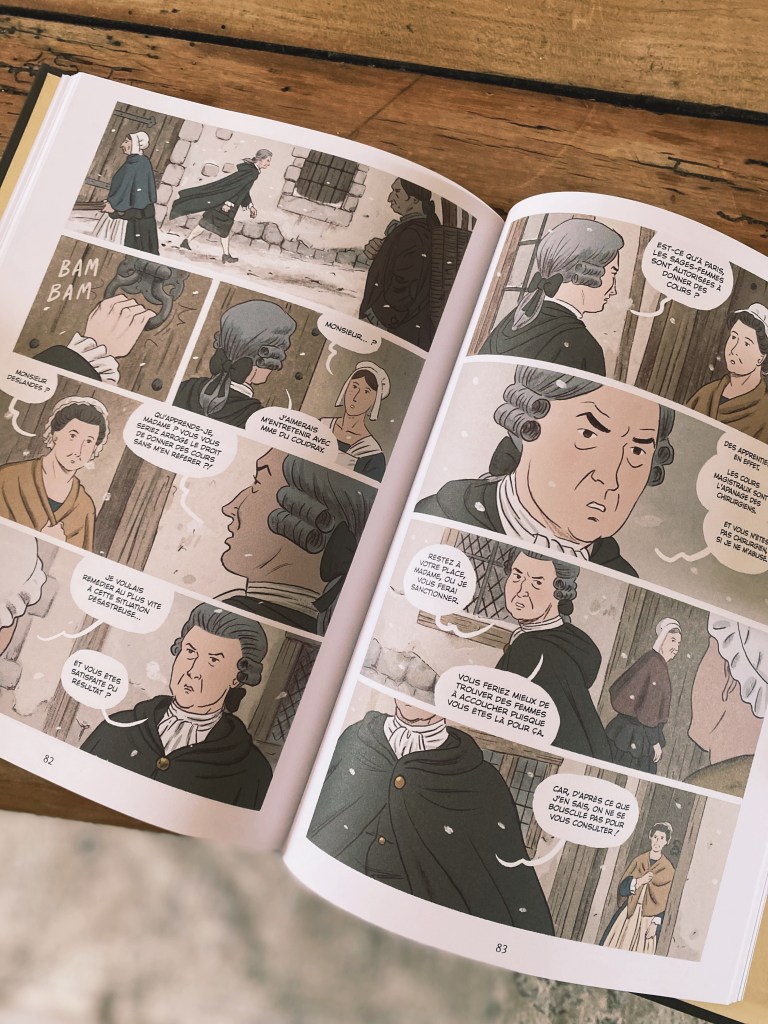 Cette BD rend hommage à Angélique du Coudray, à l’origine de grandes évolutions concernant le métier de sage-femme. A son époque, la médecine tentait d’exclure les sages-femmes des accouchements, au profit de chirurgiens, prétendument mieux formés et bien plus à même de savoir faire accoucher les femmes. Malheureusement, les familles les moins aisées ou vivant dans les coins les plus reculés ne disposaient pas de personnes formées pour les accouchements. De fait, de nombreuses femmes accouchaient seules, ou pire encore, confiaient leur vie et celle de leur enfant à d’autres femmes absolument pas formées.