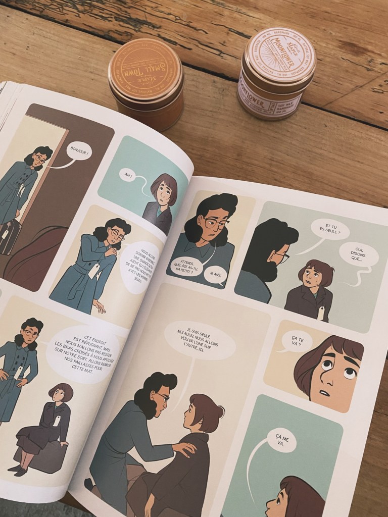 Cette histoire est inspirée de faits réels puisque c’est l’histoire de sa propre famille qu’a choisi de raconter Kiku Hugues par le biais de cette BD. Pour cela, elle a également ajouter une petite dose de fantastique à son récit puisque son héroïne va, du jour au lendemain, se retrouver propulsée à l’époque de sa grand-mère. C’est cet aspect « voyage dans le temps » qui fait aussi l’originalité de cette BD, et cela m’a beaucoup plu car j’ai trouvé qu’il apportait vraiment que chose. A travers les yeux d’une adolescente de notre époque, elle décrit les réalités historiques et les compare en permanence avec notre mode de vie et nos privilèges actuels. Je pense que cela est très pertinent pour permettre notamment aux adolescents de s’identifier à cette histoire et d’en saisir aussi toute l’importance.