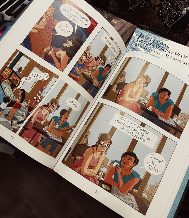 C’est une bande dessinée qui raconte la jeunesse, l’évasion, et qui respire aussi la tolérance. J’ai tout lu d’une traite et j’ai eu l’impression de prendre un énorme bol d’air frais, d’être projetée en bord de mer, et de retrouver l’esprit des vacances d’été de l’adolescence. La fin me donne une folle envie d’avoir une suite ; je ne sais pas si cela est prévu mais je croise très fort les doigts, car une si belle réussite ne peut pas s’arrêter là !